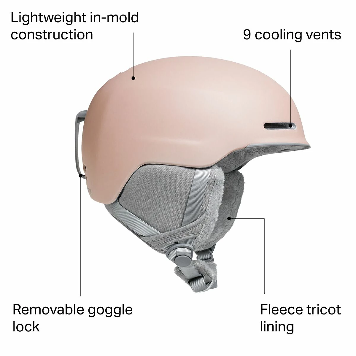 Smith’s Allure Helmet offers cushy comfort combined with unparalleled performance for a day on the slopes that can’t be beat. Outfitted with an ultra cozy fleeced tricot lining, this sleek helmet has a streamlined style ideal for slashing through clean, trackless snow or trumping through mogul-land. The lightweight, in-mold construction combines a polished PC shell with the protective EPS liner, making for top-notch defense without the clunk.